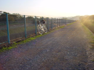 家路は西の方角です。太陽の沈む方向に帰れば夕げがとれる我が家がもうすぐ。今日も一日気持の良いツーリング(恩田川沿い)でした。家路につながる貴重な大地に優しい未舗装道路。西日に照らし出された我が愛輪がしっかりと主人を待っています。