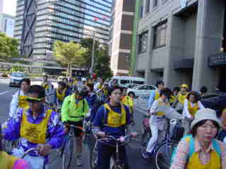 素晴らしい好天気に恵まれ、第一回シティーマラソンに胸を躍らせて参加。ニューヨ−クシティマラソンにあやかりたく、盛り立てられる一人のうちにでもなればとの思い! 新しい文化の一ページを飾りたい気持を皆と共用したく、思わず壮観なまでのサイクリストのパワーを写す。