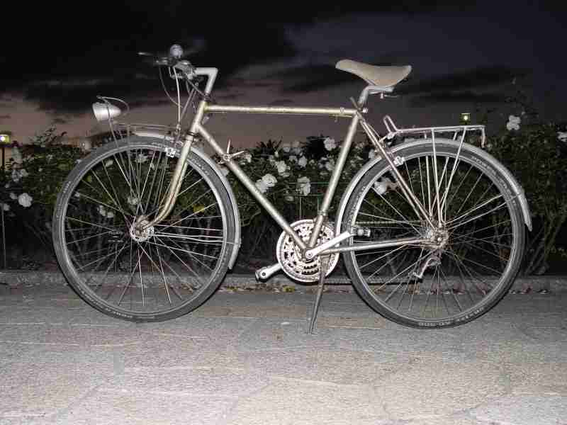 いつ買ってもらったか? 中学3年、いや高校生になってから? 今は誰もいない実家の納屋にしまわれ、時たま帰った時にそっと触れてまた元気よく走り出す思い出の詰まった自転車。そろそろ処分しなければの気持でお別れのように幻想的な写真に仕上がりました。家から数分の浜寺公園でバラ園をバックにフラッシュをたいての撮影でした。