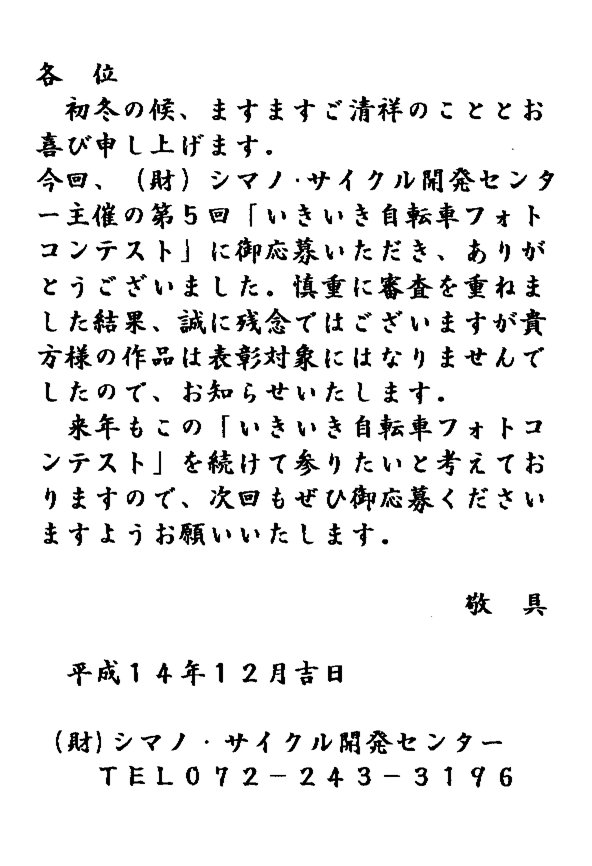 世界の自転車部品メーカS社の企画に賛同ししての応募